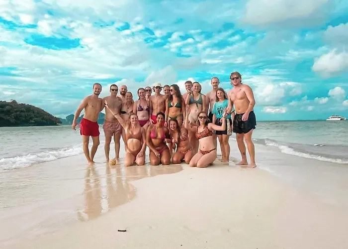 다운타운 크라비 지구에 위치한 슬리퍼 호스텔 끄라비은 왓 캐우 코라와람에서 3km 떨어져 있으며 산의 전망을 제공합니다.